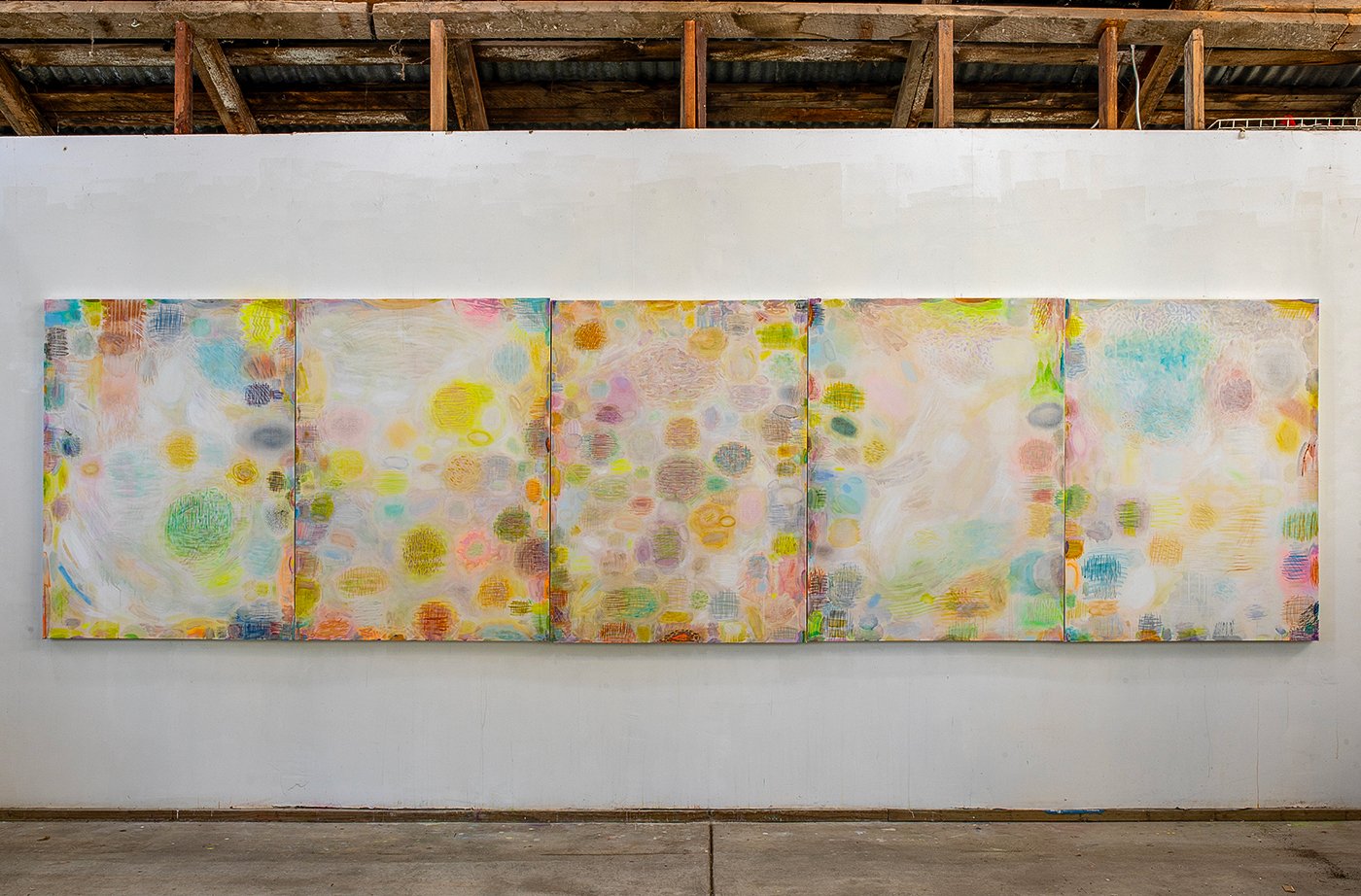 Watermark, Pentaptych #1, 48” x 360”, Watercolor and Pastel on Canvas, 2026